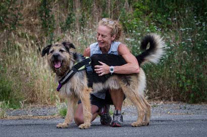 Nach einer Weile spazieren gehen läuft Elliot dann angenehm an der Leine!
