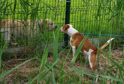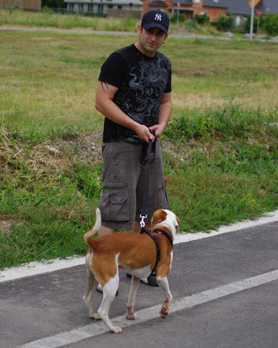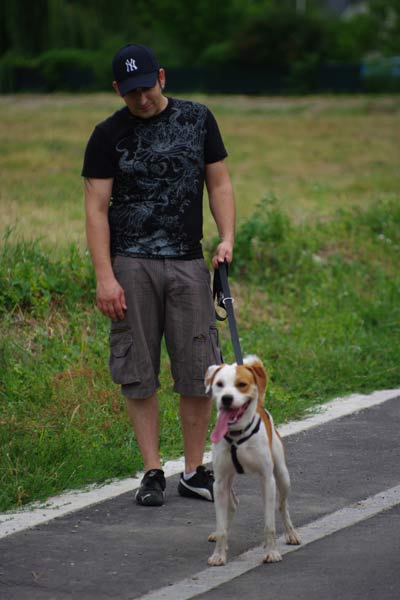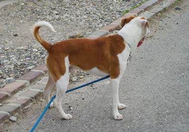 Enzo ist ein Beagle-Pointer Mix geboren am 01.07.2008. Der junge Rüde wurde am Baum angebunden ausgesetzt. Er ist ein mittelgroßer lieber und so wie es scheint ein verträglicher Quirl. Enzo fand die Zaunrüppel an denen wir vorbei kamen interessant worauf diese ganz erstaunt das bellen einstellten ;-)