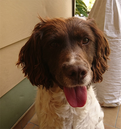 Enzo ist ein lieber und freundlicher Spaniel Mix.