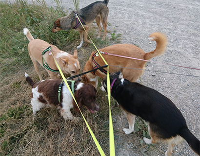 Enzo wohnt jetzt mit einer Hündin und hat andere Hundekumpels als Nachbaren.