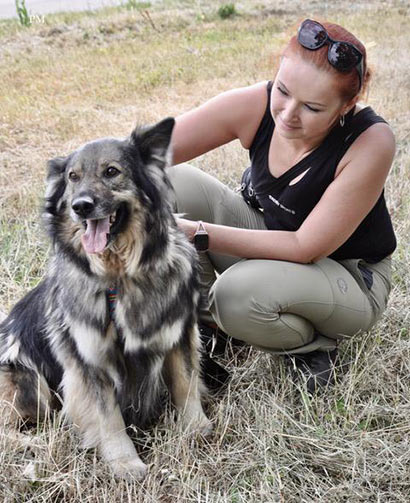 Die freundliche Hündin freut sich sehr über die Zuwendung und ausgedehnte Spaziergänge.
