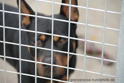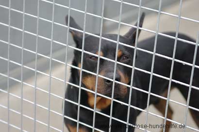 Das schlimmste war, ihn wieder in seinen Zwinger zu bringen, denn als ich diesen verliess, hörte ich noch, wie er traurig hinter mir her winselte, als wolle er fragen „kannst du mich denn nicht wieder mitnehmen?“ …Ich kann leider nicht… können Sie? |