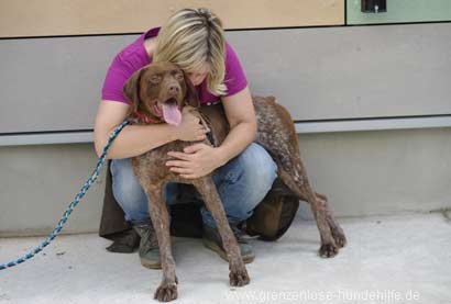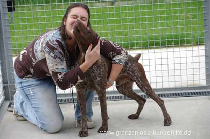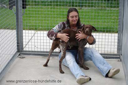 Hilflos versuchen wir Ihn mit allen Mitteln aufzumuntern, aber ein Zuhause mit Menschen die sich immer um Ihn kümmern, Ihm das Gefühl geben für Ihn da zu sein- dies können wir Ihm nicht bieten. Immer den Tränen nahe verlassen wir den Zwinger und sind traurig Ihm nicht helfen zu können!!
