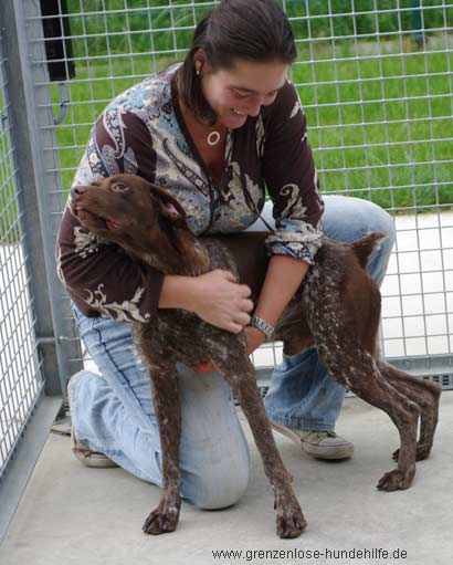 Er braucht schnell liebe Menschen die Ihn aus dem Zwinger herausholen. Er leidet entsetzlich, magert zusehends ab und wird immer trauriger :-((