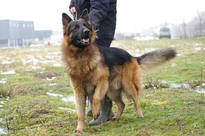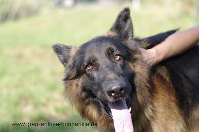 Eros, geb. 16.10.2009, ein männlicher deutscher Schäferhund. Eros wurde von der Feuerwehr abgeholt, weil seine bereits ältere Besitzerin im Krankenhaus ist. Davor war er für das Militär tätig.