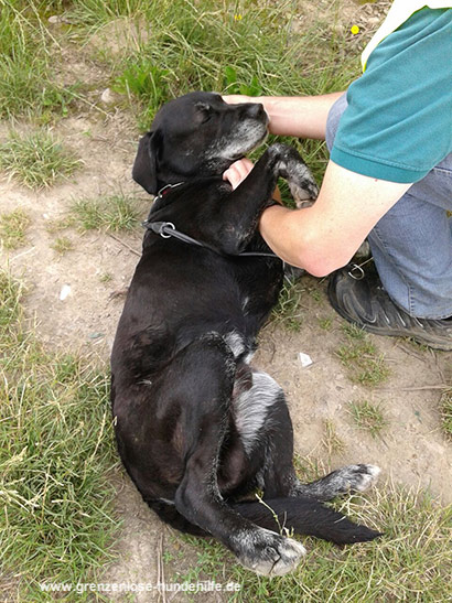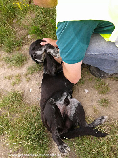 Der Rüde besitzt etwas Grundgehorsam und ist lieb mit kleinen und großen Menschen.