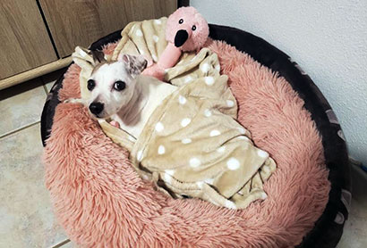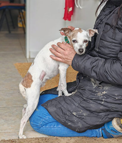 Wir haben Etoile im Büro untergebracht, damit sie nicht in einen der klammen Zwinger musste!