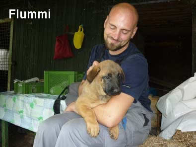 Flummi: Flummi ist trotz seines Namens der Phlegmatiker des Wurfes aber Weltmeister im Fressen. Er ist sehr liebevoll und zärtlich im mit seinen Menschen. Er ist ein kleiner Genießer und lässt sich mit Wonne stundenlang streicheln und massieren.