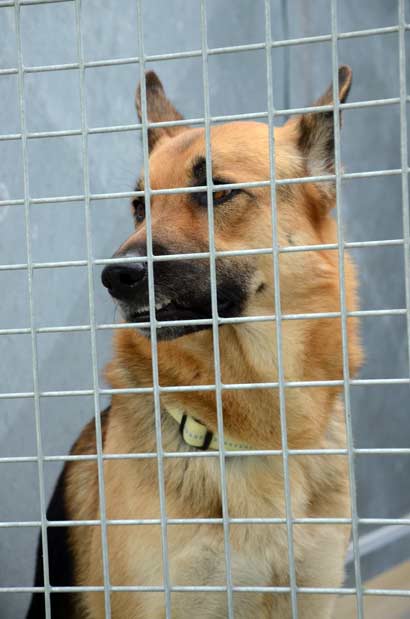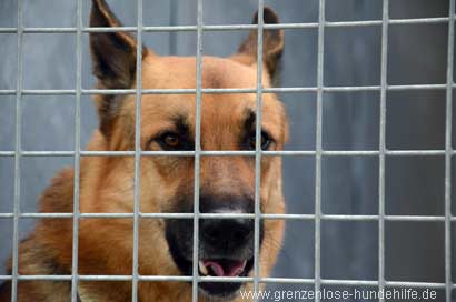Der traurige Deutsche Schäferhund heißt Falco und hatte bereits zwei Besitzer :-(