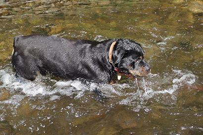Der gestandene Rottweiler Rüde Jagger wurde umbenannt in Falko. Falko darf nur mit ausgewählten Gassigängern spazieren gehen, da man vorsichtig ist.