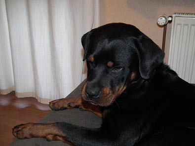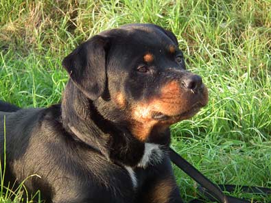 Feydo wurde bereits kastriert, ist an Autofahren gewöhnt, ist stubenrein, ist trotz einer festgestellten ganz leichten HD nicht eingeschränkt in seinen Bewegungen und ist ein Jungspund im besten Flegelalter ;-) Er kann die üblichen Kommandos wie Sitz, Platz, wobei seine Besitzer noch Lust haben müssen, weiterhin mit ihm zu arbeiten - immerhin will ein Rottirüde mit 1,5 Jahren noch ausgebildet werden und seine Grenzen testen.