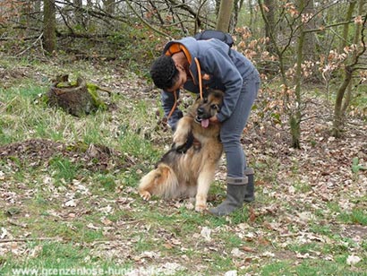 Mit den anderen Hunden hat er keinerlei Probleme, kann sich unterordnen und reagiert sehr positiv, wenn er von einem anderen Hund in die Schranken gewiesen wird.