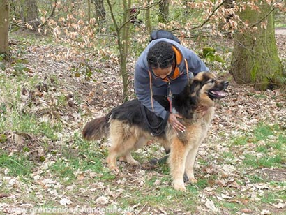 Bei SEINER Gassigeherin - zu der er großes Vertrauen hat - ist er ein überaus verschmuster Hund und liebt es zu kuscheln.