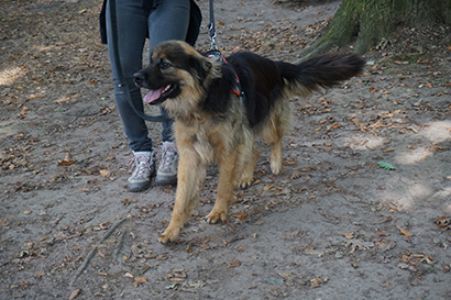 An der Leine lässt er sich sehr gut führen, Begegnungen mit anderen Hunden werden meistens ignoriert.