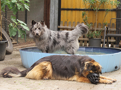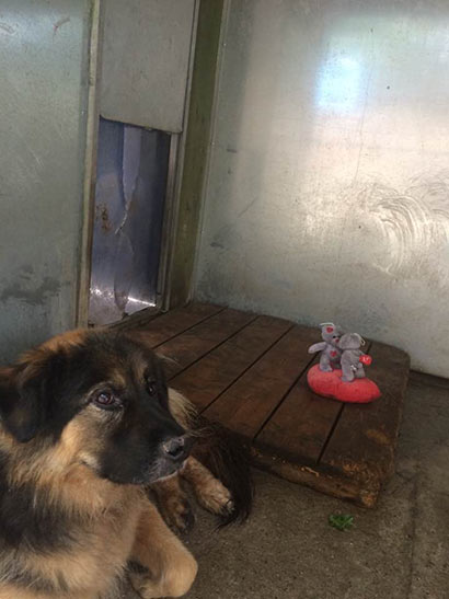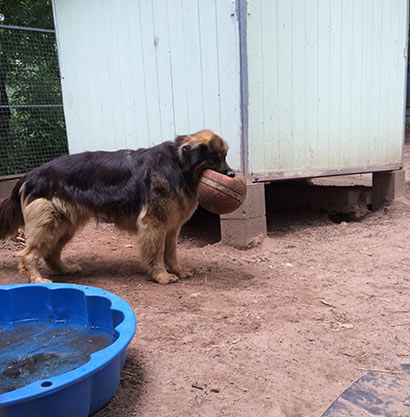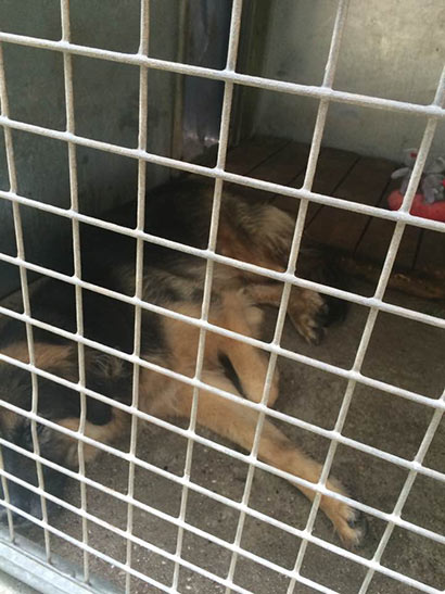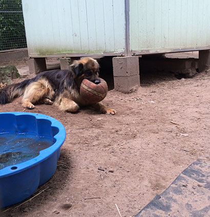 So läuft er in seinem Zwinger auf und ab, sehr nervös und gestresst. Die vielen Hunde, der hohe Geräuschpegel, die vielen fremden Menschen zu den Besuchszeiten machen aus dem Schäferhundmix ein Nervenbündel.