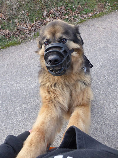 Darum trägt Filou beim Spaziergang immer seinen Maulkorb.