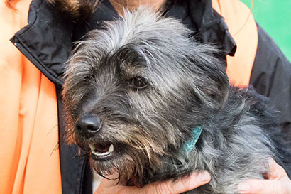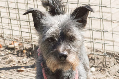 Filou kam mit dem Tierheimalltag nicht zurecht und zeigte sich anfangs zurückhaltend, vorbeigehende Besucher bellte er an und zeigte sich nicht von seiner besten Seite.