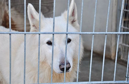 Im Zwinger - und da befindet er sich tagtäglich mindestens 23 Stunden - hat Flocon enormen Stress, er läuft oft verzweifelt hin und her und kommt kaum zur Ruhe.