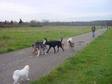 grossen Wiese spazierengehen. Dort treffen sich jeden Tag Hundebesitzer