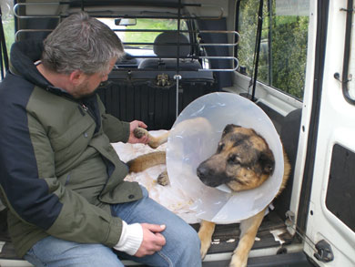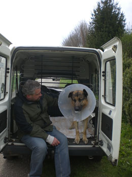 Fotos vom 3-Bein Hugo, der brav in Concettas Auto wartete.