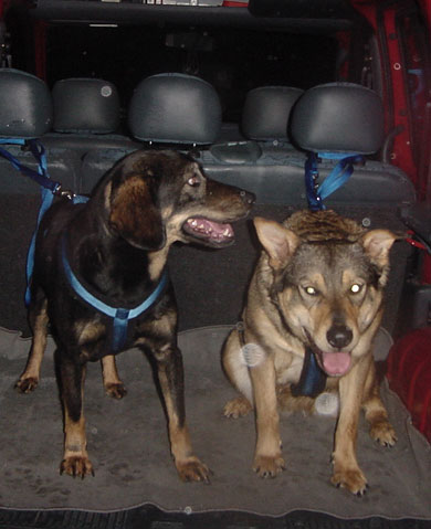Reise in ihr neues Zuhause. Wir wünschen dem Hundepäarchen