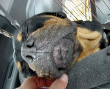 Knautschgesicht Lea wollte NUR schmusen auf der Fahrt ;-)