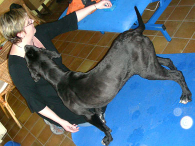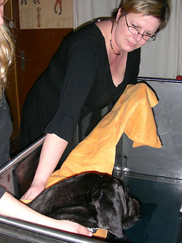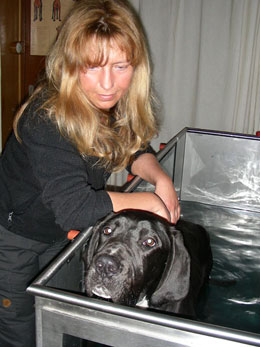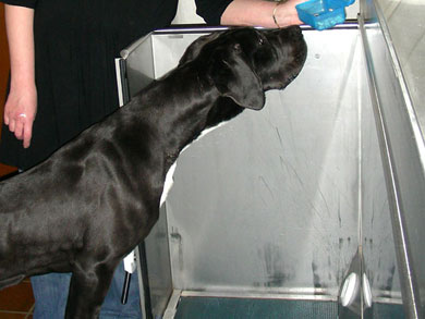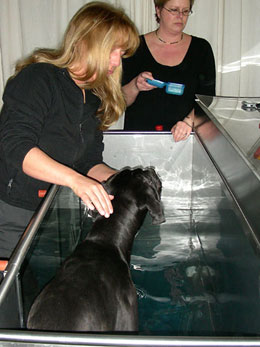 zum ersten Mal auf dem Wasserlaufband bei einer Tierphysiotherapeutin