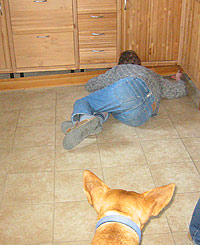meinen Ball unter die Küchenmöbel und Wolfgang holt sie