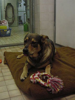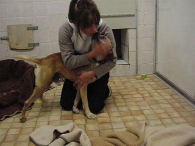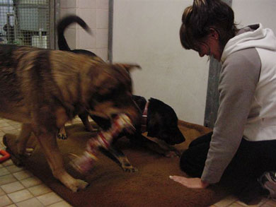 Nicos mit seinen schlechten Augen musste durch die Tierheimgänge
