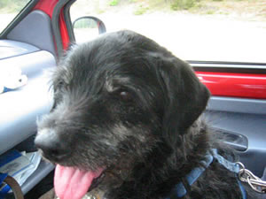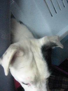 Titou und Pirat stundenlang im Auto fahren. Wir wurden in Boxen