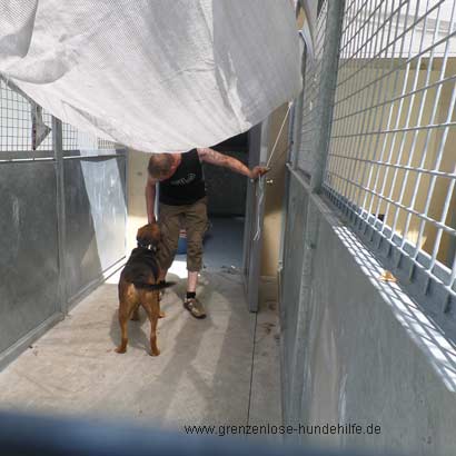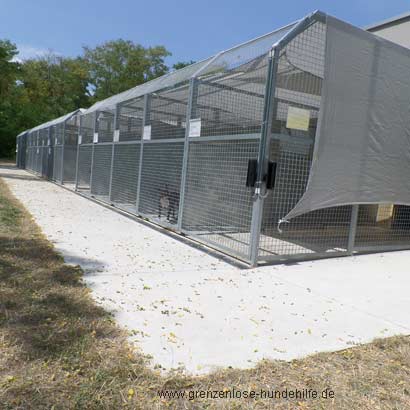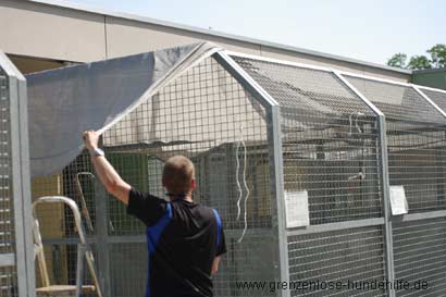 Das Problem ist, dass eine Zwingerreihe fast den ganzen Tag in der Sonne steht und die Hunde somit immer wenn Sie etwas erleben wollen aus Ihrem geschützten Innenräumen raus müssen, sonst sehen Sie nichts... :((