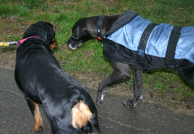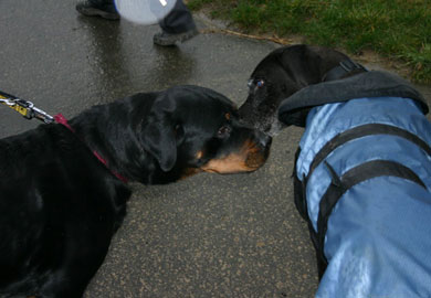 Rika ging brav an der Leine, vertrug sich mit Cindys Dogge Pauline