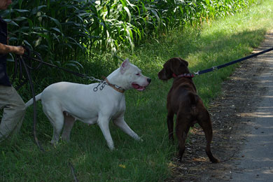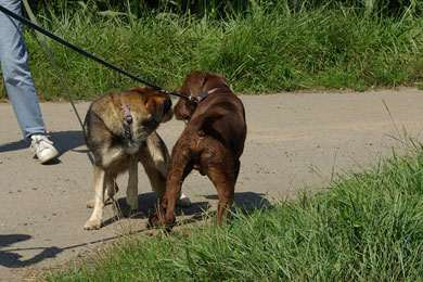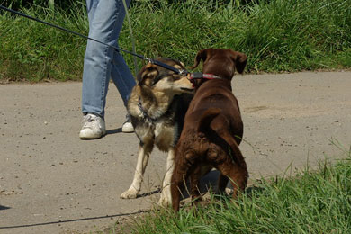 er geht nicht von sich aus auf andere Hunde, aber wenn
