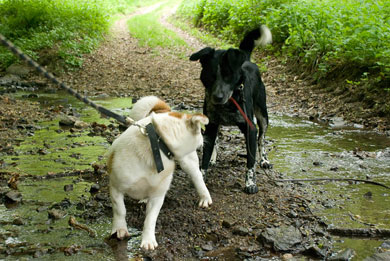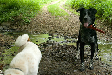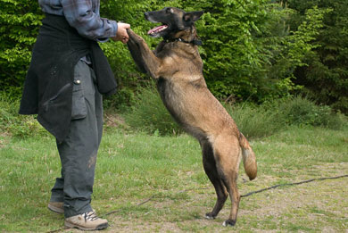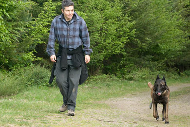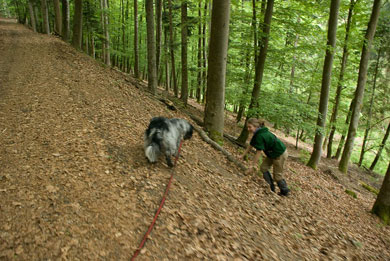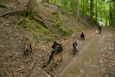 Toufou geht - Ulysse schaut die Gassigeherin an