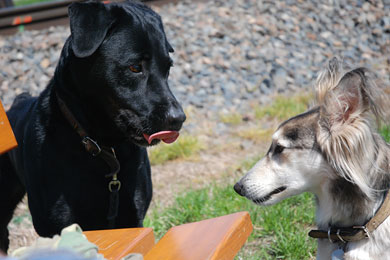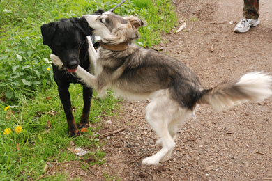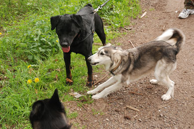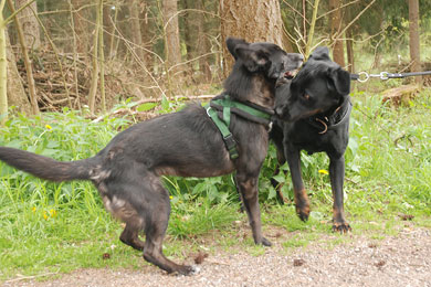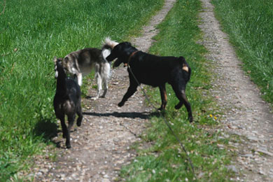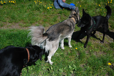 Am Samstag wurde Solo ersteinmal auf andere Hunde getestet.
