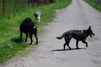 mit mir und meinen Hunden Gassi. Solo trägt nun