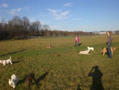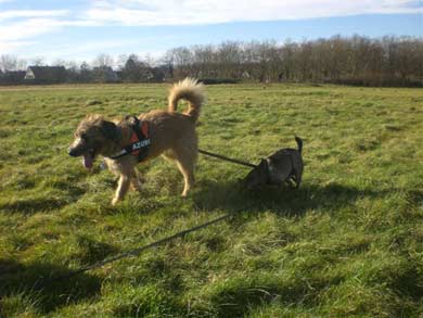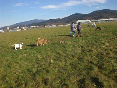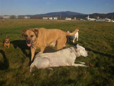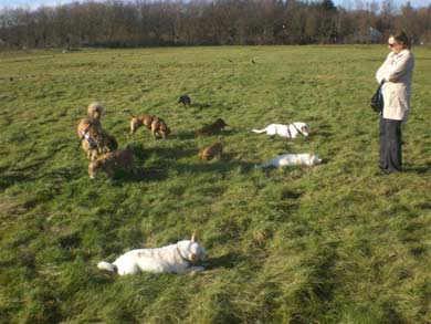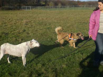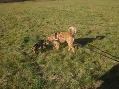 am besten klappt es mit Hunden die er schon kennt.