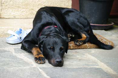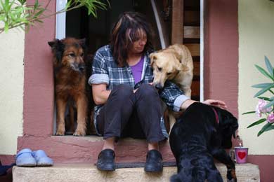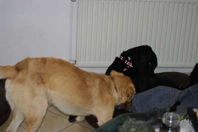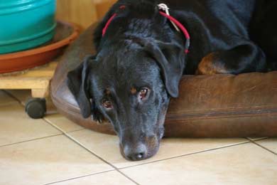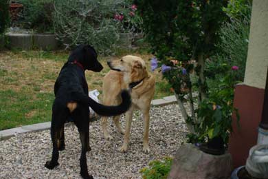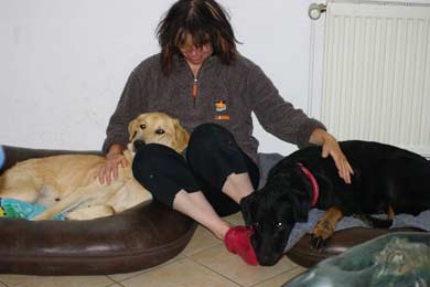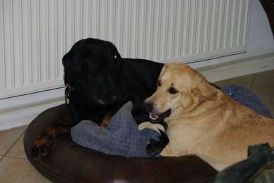 Michi hat sich dann zu uns ins Hundebett gesetzt