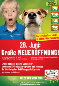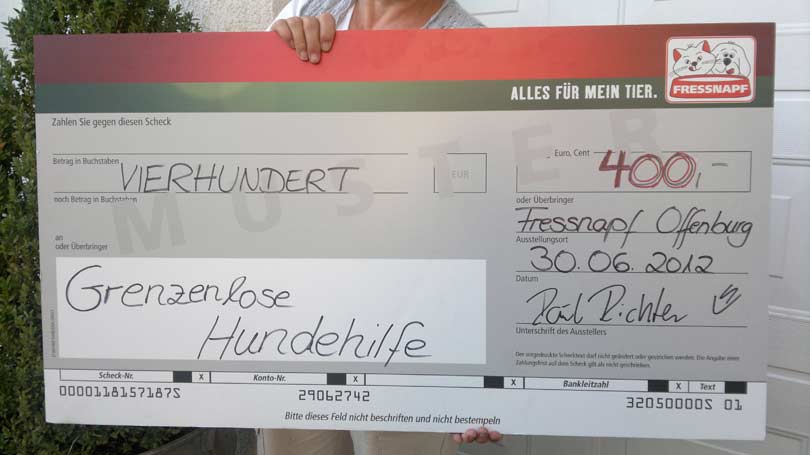 Fressnapf eröffnete am 28. bis 30. Juni in Offenburg den größten Markt Baden-Württembergs. Es wurde eine große Tombola veranstaltet, deren Erlös zu unseren Gunsten ging. Außerdem sollten wir auch noch den Betrag, den Raúl Richter, bekannt aus Gute Zeiten schlechte Zeiten, beim Powerkassieren in nur 20 Minuten einnehmen würde,gespendet bekommen.