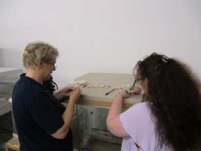 Sandra, Heike und Susanne bestücken die Tombola für den zweiten Tag