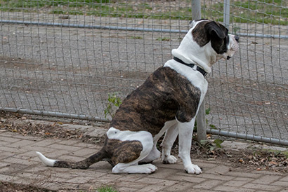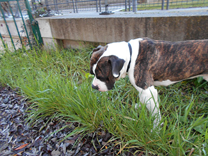 Frisko ist ein sehr schöner, ruhiger und lieber Rüde. Ich glaube, ihn kann nichts so schnell aus der Ruhe bringen. Bei Hundebegegnungen läuft er entspannt weiter.