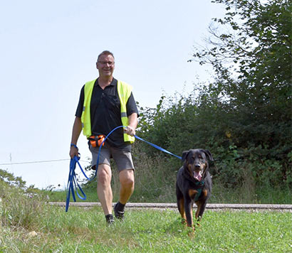 Trotz seines Alters ist Fuego noch ein fitter, kräftiger Opa, der auch schon mal an der Leine zeihen kann.