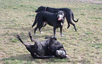 Nachdem wir die drei Hündinnen öfters miteinander beobachten konnten denken wir, dass die Hündinnen Funny und Deese mehr aneinander hängen. Während Djipsy sich bei den Gassigängern mehr in den Vordergrund stellt und jede nur erdenkliche Streicheleinheit für sich abholen will. Daher sind wir der Meinung, dass sich Djipsy sicherlich auch ohne Ihre Verwandtschaft wohlfühlen würde.