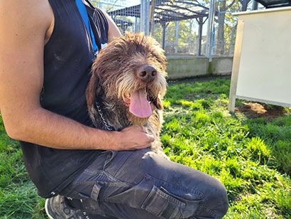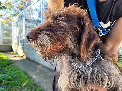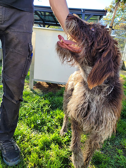 Der liebe 6jährige Drahthaar Rüde Gandalf wurde gefunden, ANGEBUNDEN AN EINEM BAUM.