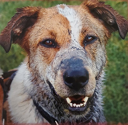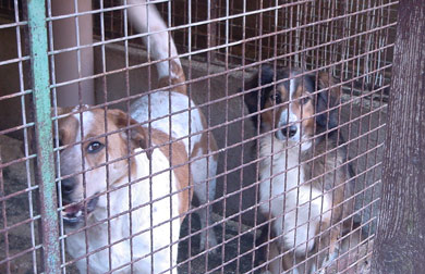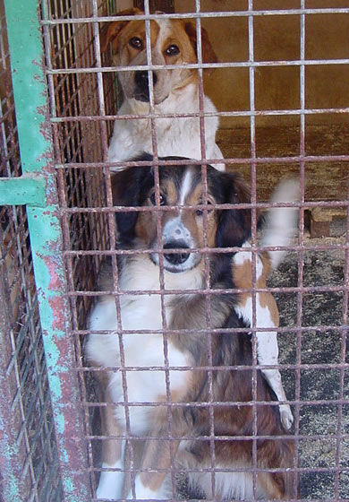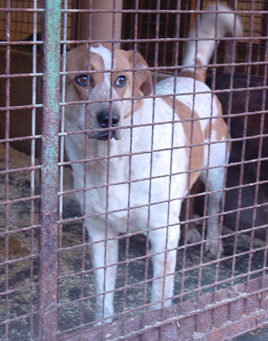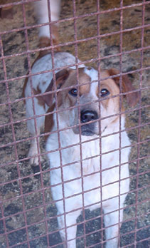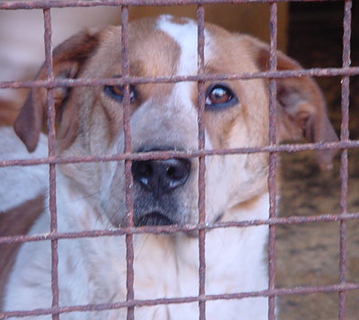 einen Hund, der zwei Jahre hinter Gittern gesessen