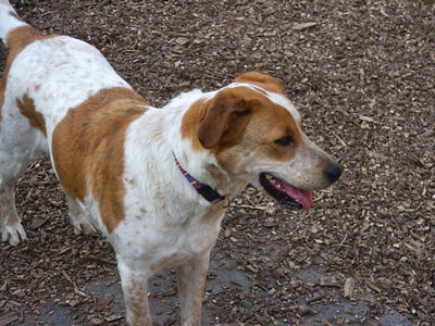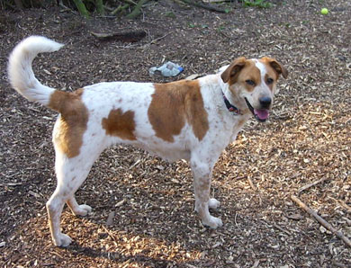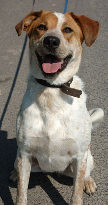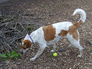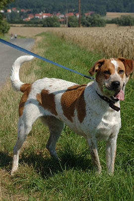 Eine Epagneul-Mix-Hündin, geboren ca. im April