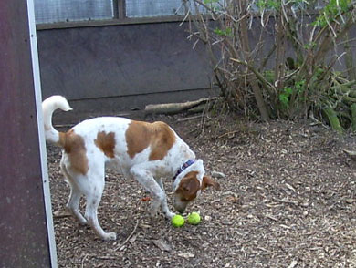 eine Wilde mit Bällen und Spieltauen. Ausserdem