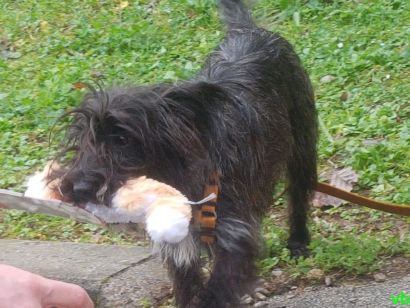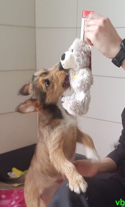 Die Welpenkinder Pauline und Esteban waren am Ende des Mittags kleine müde Krieger, nachdem sie die ganze Zeit mit dem Spienzeug herumtollten.