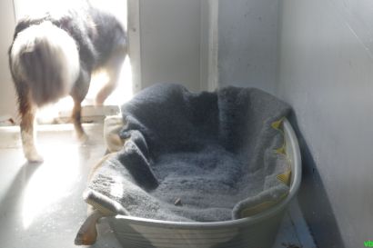 Leider sind uns diese Bilder nicht geglückt: Charly, der sich mit einer Decke sogar zudeckte, Blacky der seinen Kong toll findet und Tony, der sich ganz genüsslich an seinem Kauknochen die Zeit vertreibt. Es war so schön Filou zu beobachten, der sich zum ersten Mal mit einem Spielzeug beschäftigte.