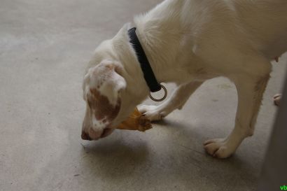 Hito liebt seine Kauwurzel und trägt diese stolz immer bei sich.